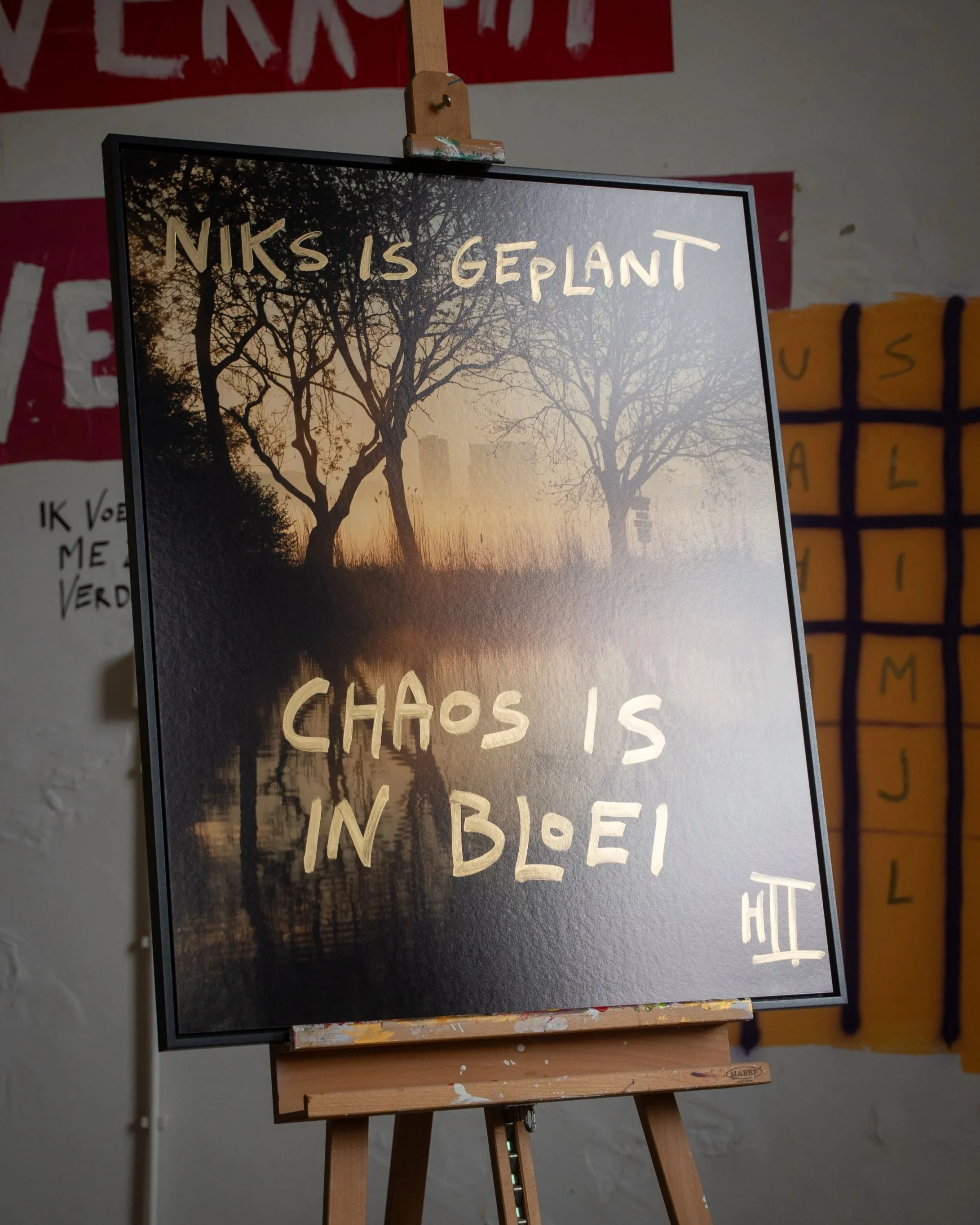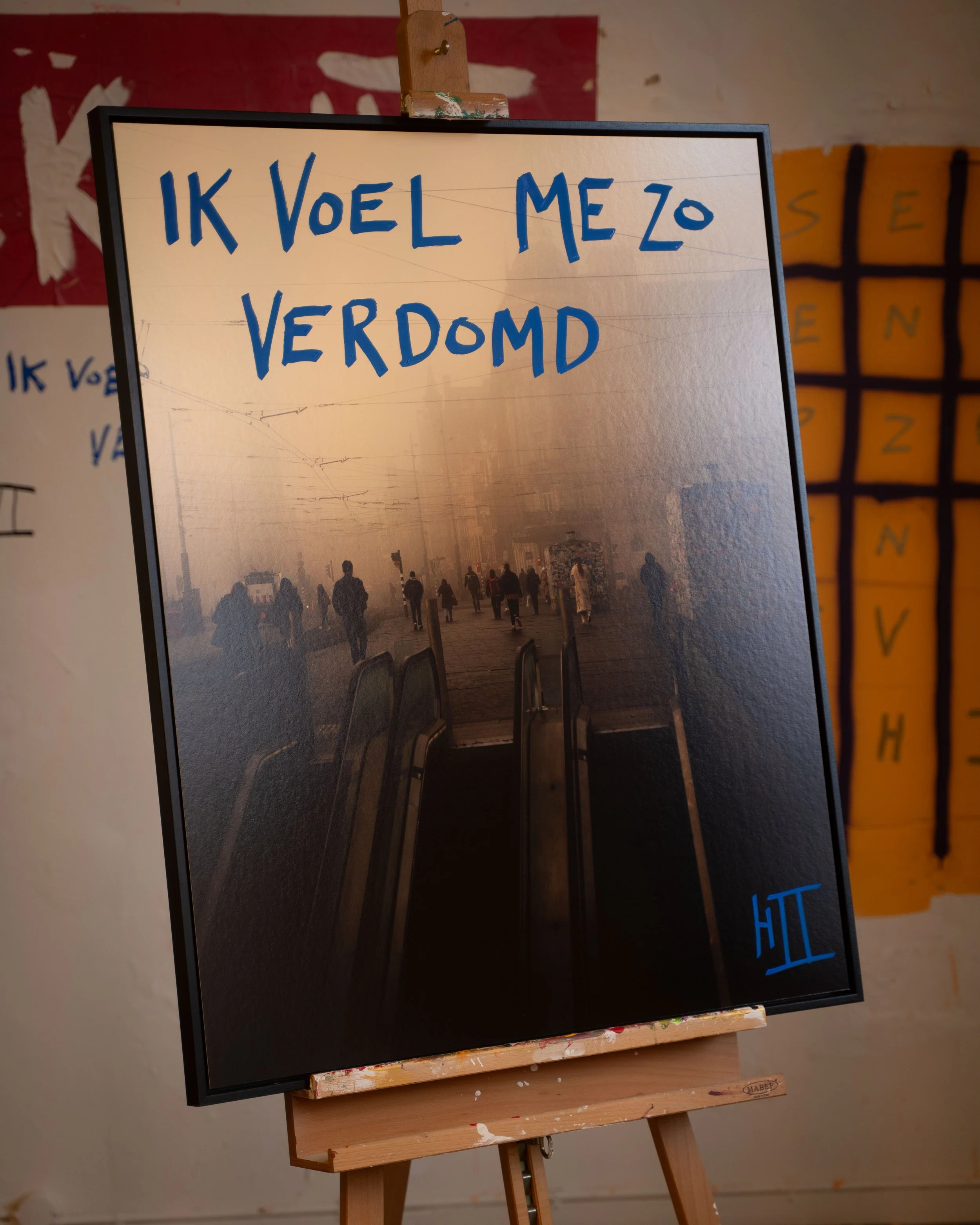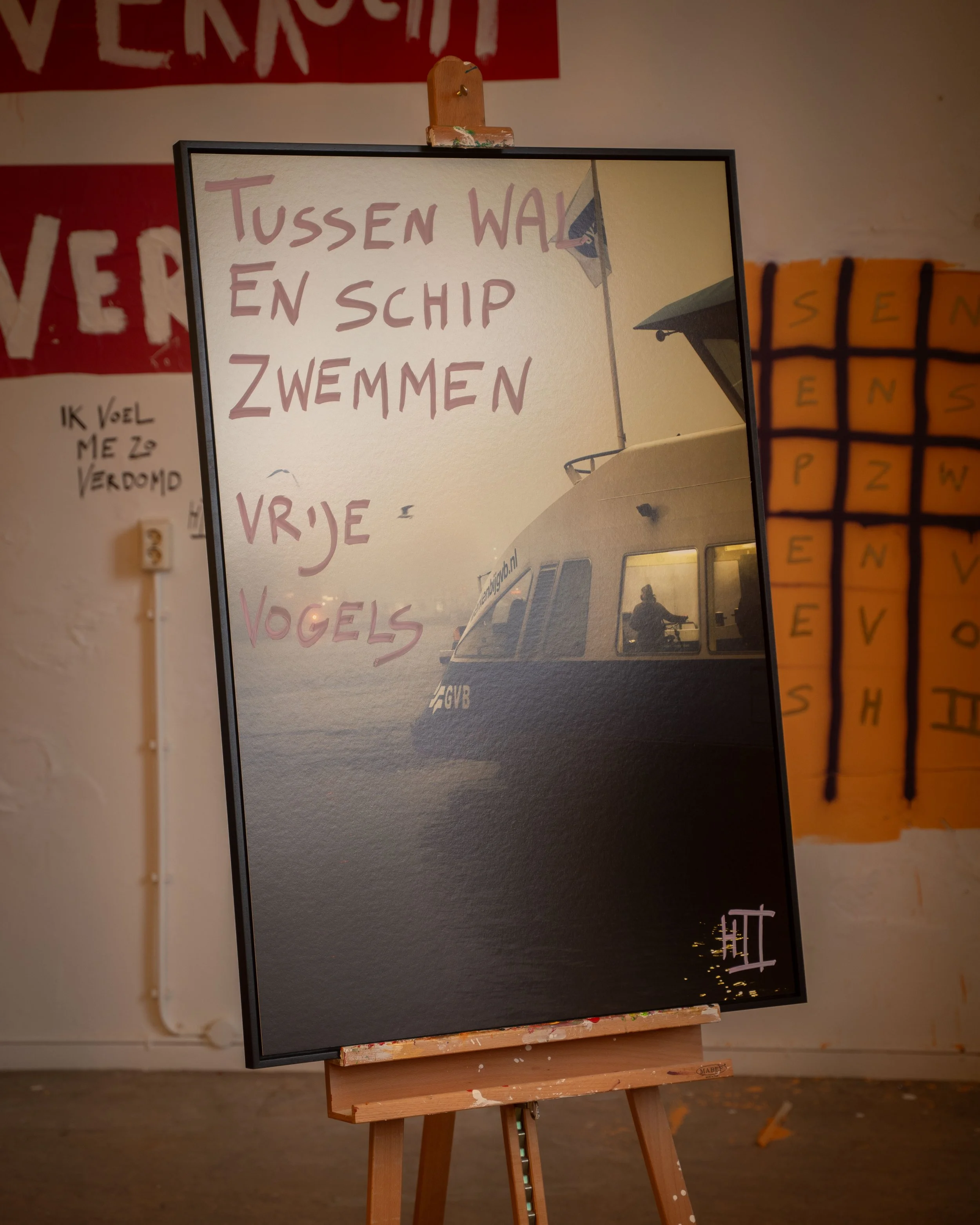 Hans de Tweede’s most famous text. Hand written on a signature photo of the Amsterdam ferry, printed on museum grade Hahnemuhle baryta paper. In a hand made black box frame. In a limited edition of only three pieces. Includes a signed certificate of authenticity.